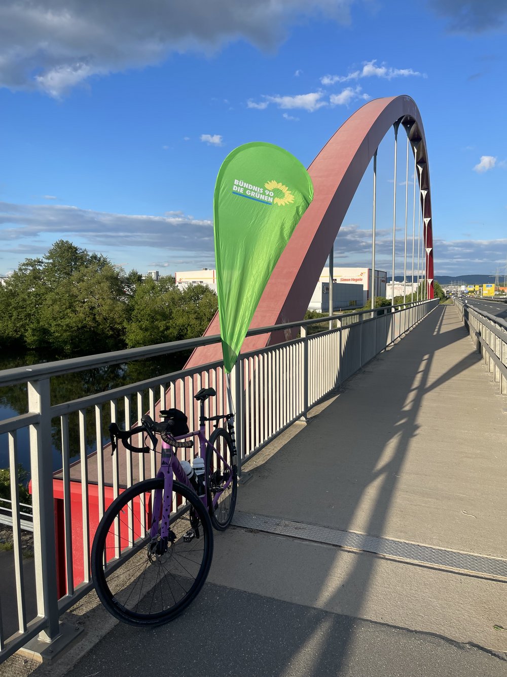 Markus hat sich für das diesjährige Stadtradeln ein ehrgeiziges Ziel gesetzt: Er möchte jede Straße und jeden Radweg der Stadt mit dem Fahrrad „erfahren“. Seit Montag ist er unermüdlich unterwegs – gut sichtbar mit unserer grünen Beachflag – und hat bereits Burk, Buckenhofen, die gesamte Sportinsel sowie das Gebiet westlich des Kanals zwischen Hausen und Schleuseninsel unter die Räder genommen.